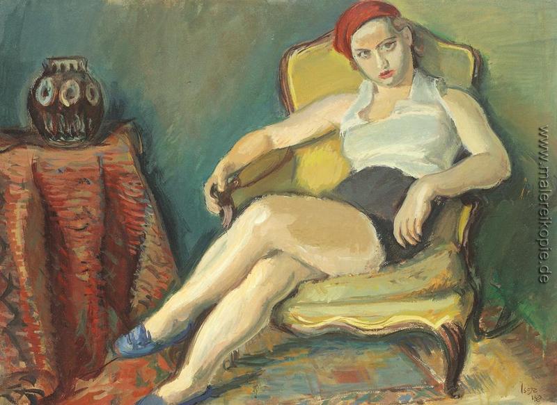 100% Handgemalte Produktion von Frau in der gelben Stuhl' von Iosif Iser auf Leinwand, Kunstreproduktion in Museumsqualität.