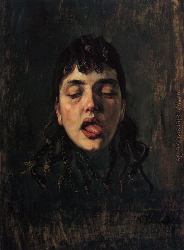 100% Handgemalte Produktion von Gorgonenhaupt' von Wilhelm Trubner auf Leinwand, Kunstreproduktion in Museumsqualität.