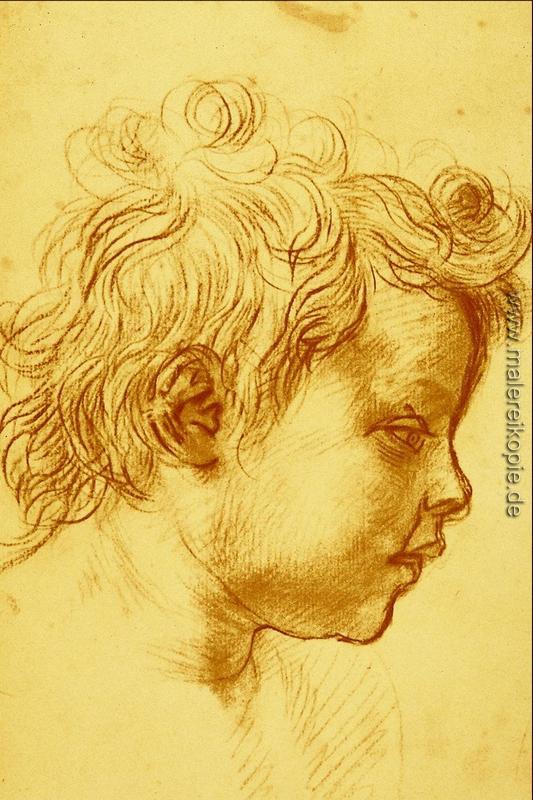 100% Handgemalte Produktion von Kopf eines Kindes' von Andrea del Sarto auf Leinwand, Kunstreproduktion in Museumsqualität.