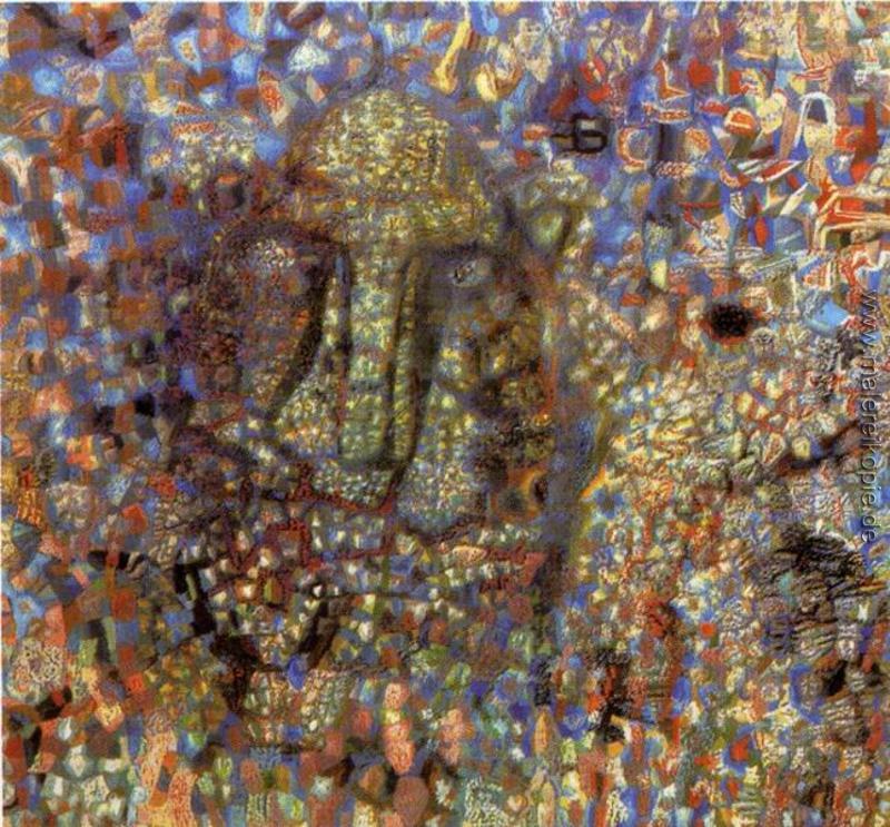 100% Handgemalte Produktion von Kopf' von Pavel Filonov auf Leinwand, Kunstreproduktion in Museumsqualität.