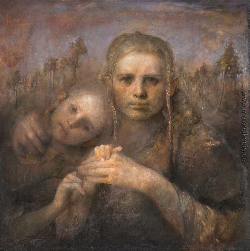 100% Handgemalte Produktion von Mutter und Tochter' von Odd Nerdrum auf Leinwand, Kunstreproduktion in Museumsqualität.
