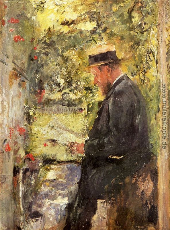 100% Handgemalte Produktion von Porträt des Tierarztes Dr. Reindl in der Laube' von Wilhelm Leibl auf Leinwand, Kunstreproduktion in Museumsqualität.
