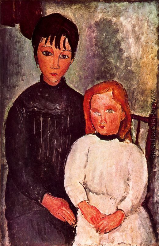 100% Handgemalte Produktion von Zwei Mädchen' von Amedeo Modigliani auf Leinwand, Kunstreproduktion in Museumsqualität.