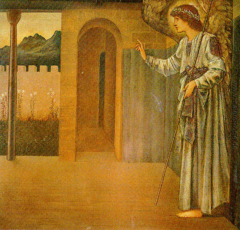 100% Handgemalte Produktion von Die Verkündigung der Engel' von Edward Burne-Jones auf Leinwand, Kunstreproduktion in Museumsqualität.