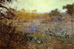Field of Texas Bluebonnets und Kaktusfeige-Kaktus-