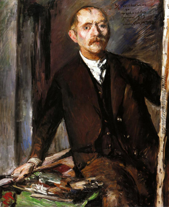 100% Handgemalte Produktion von Selbstbildnis vor der Staffelei' von Lovis Corinth auf Leinwand, Kunstreproduktion in Museumsqualität.