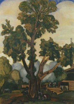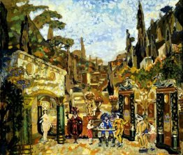 Park vor dem Schloss. Design für "Schwanensee" von Tschaikowski.