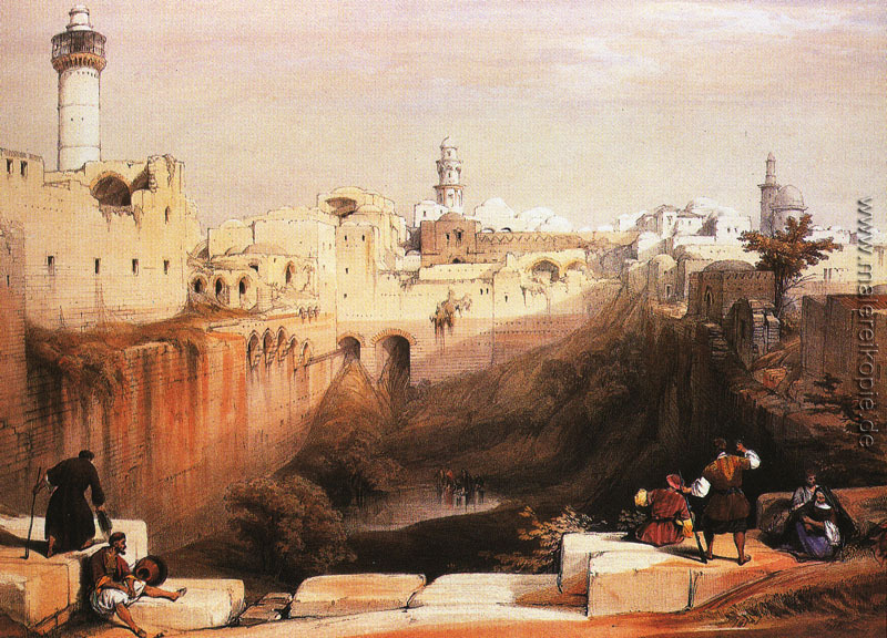 100% Handgemalte Produktion von Das Pool von Bethesda' von David Roberts auf Leinwand, Kunstreproduktion in Museumsqualität.