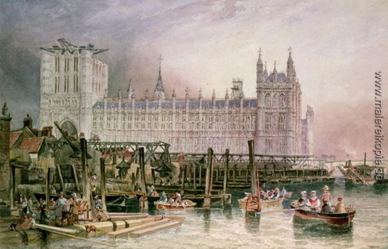 100% Handgemalte Produktion von Die Häuser des Parlaments im Laufe der Errichtung' von John Wilson Carmichael auf Leinwand, Kunstreproduktion in Museumsqualität.