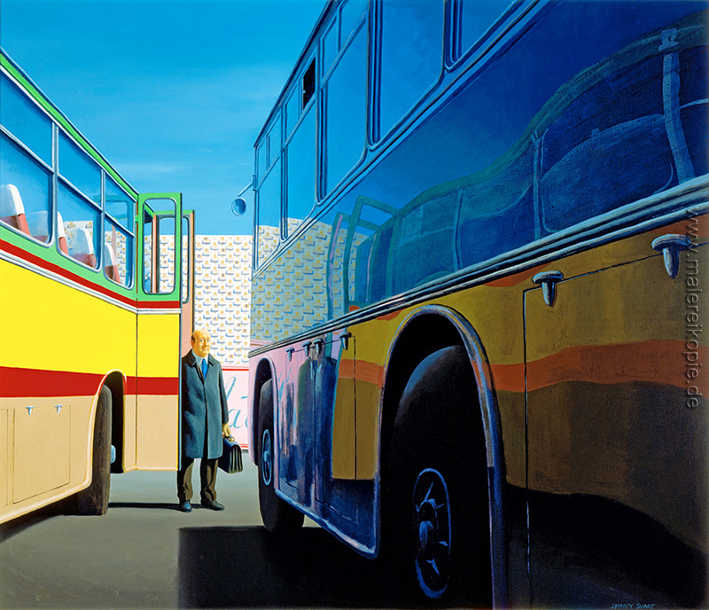 100% Handgemalte Produktion von Die Reisenden' von Jeffrey Smart auf Leinwand, Kunstreproduktion in Museumsqualität.