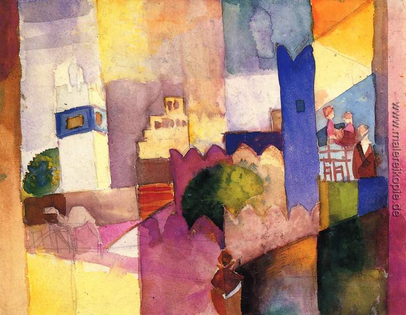 100% Handgemalte Produktion von Kairouan (III)' von August Macke auf Leinwand, Kunstreproduktion in Museumsqualität.