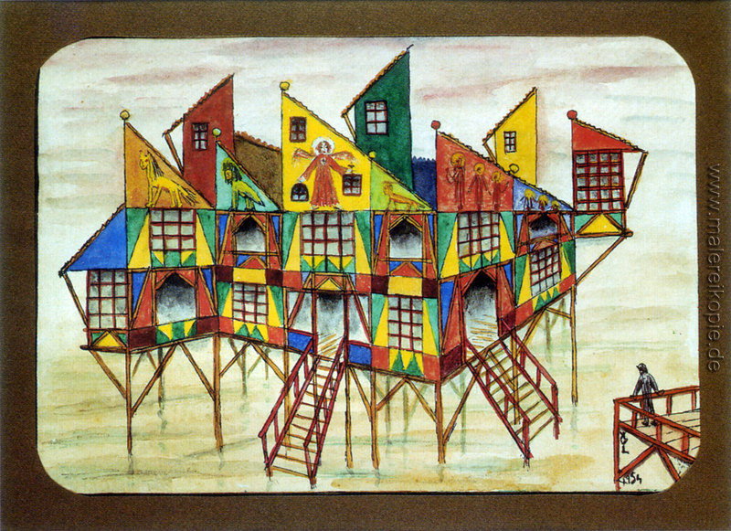 100% Handgemalte Produktion von Proyecto Fachada Delta (# 1)' von Xul Solar auf Leinwand, Kunstreproduktion in Museumsqualität.