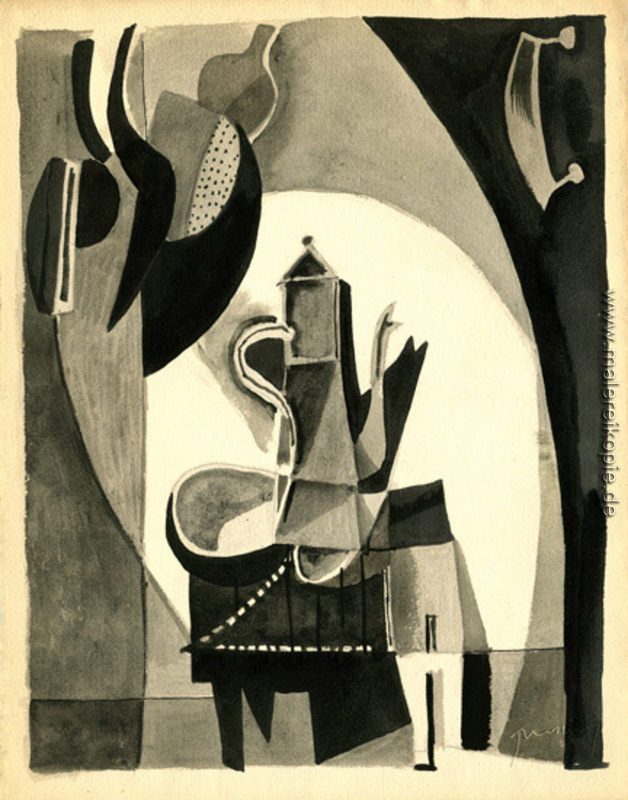 100% Handgemalte Produktion von Cafetière' von Mario Prassinos auf Leinwand, Kunstreproduktion in Museumsqualität.