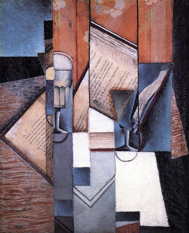 100% Handgemalte Produktion von Das Buch' von Juan Gris auf Leinwand, Kunstreproduktion in Museumsqualität.