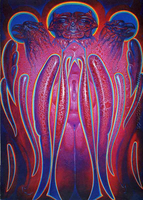 100% Handgemalte Produktion von Cherub mit einem Amethyst' von Ernst Fuchs auf Leinwand, Kunstreproduktion in Museumsqualität.