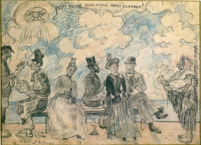 100% Handgemalte Produktion von Unter Hölle, Hölle Oben, Hölle All Around' von James Ensor auf Leinwand, Kunstreproduktion in Museumsqualität.