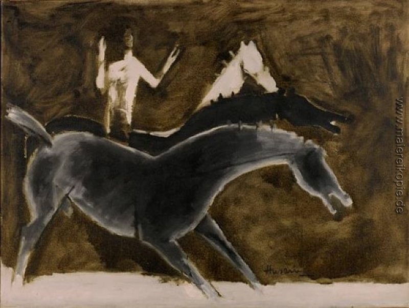 100% Handgemalte Produktion von Pferde' von M.F. Husain auf Leinwand, Kunstreproduktion in Museumsqualität.