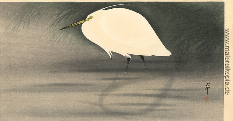 100% Handgemalte Produktion von Kleine Silberreiher' von Ohara Koson auf Leinwand, Kunstreproduktion in Museumsqualität.