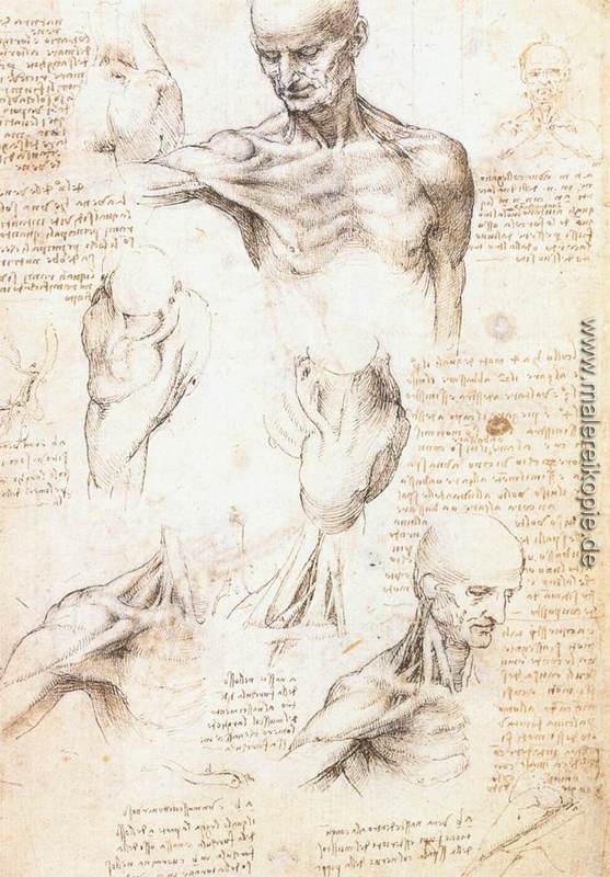 100% Handgemalte Produktion von Anatomische Studien eines männlichen Schulter' von Leonardo da Vinci auf Leinwand, Kunstreproduktion in Museumsqualität.