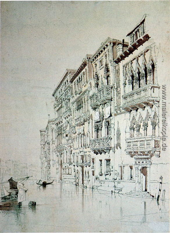 100% Handgemalte Produktion von Casa Contarini Fasan Venedig' von John Ruskin auf Leinwand, Kunstreproduktion in Museumsqualität.