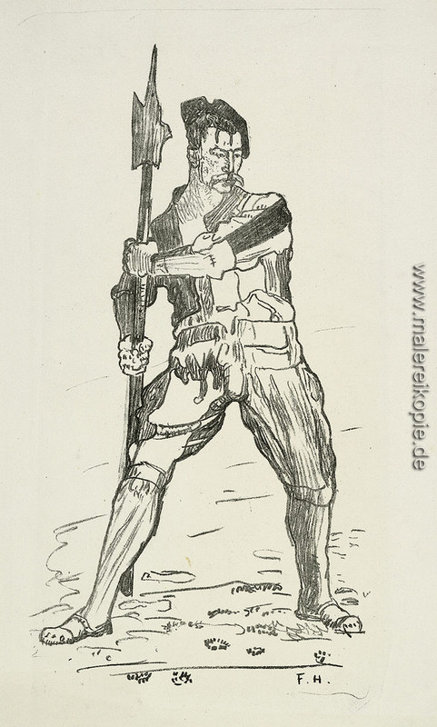 100% Handgemalte Produktion von Landsknecht mit Hellebarde' von Ferdinand Hodler auf Leinwand, Kunstreproduktion in Museumsqualität.