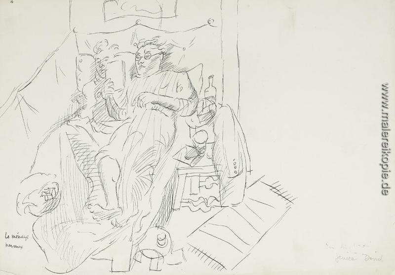 100% Handgemalte Produktion von Le menage hereux' von Jean David auf Leinwand, Kunstreproduktion in Museumsqualität.