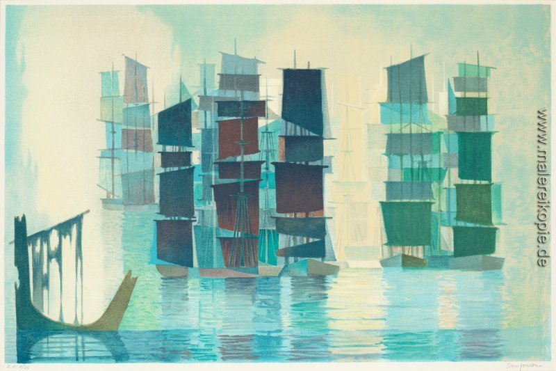 100% Handgemalte Produktion von Ich Vantan på vind' von Sven Jonson auf Leinwand, Kunstreproduktion in Museumsqualität.