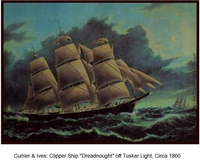 100% Handgemalte Produktion von Schnelle Clipper (Packet) Schiff, Dreadnought, unter Kapitän Sam' von Currier and Ives auf Leinwand, Kunstreproduktion in Museumsqualität.